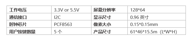 兼容各种开发板I2C接口,只需要接连4根线,轻松实现显示、按键控制和获取实时时钟功能,免去大量重复开发,到手即可使用